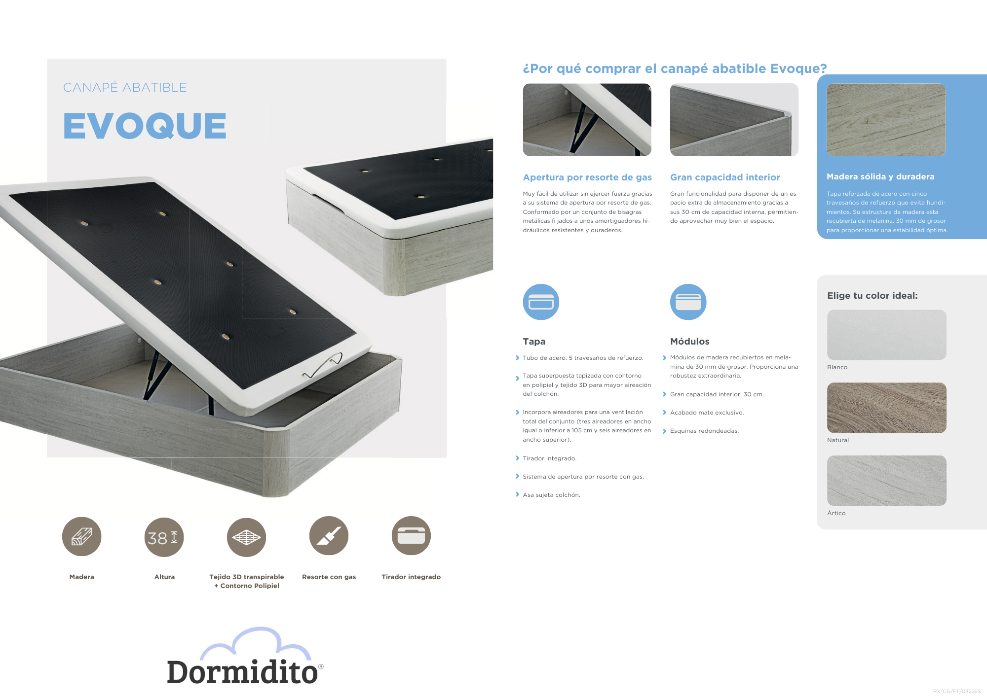 - Tapa superpuesta tapizada en tejido 3D para mayor aireación del colchón.