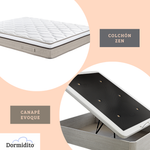 - Familia Paraíso: Los colchones más exclusivos y premium de Dormidito. Fabricados en su mayoría con tejido Jacquard elástico, proporcionan el máximo confort y estabilidad, ofreciendo una experiencia de descanso que nos transporta a la infancia.